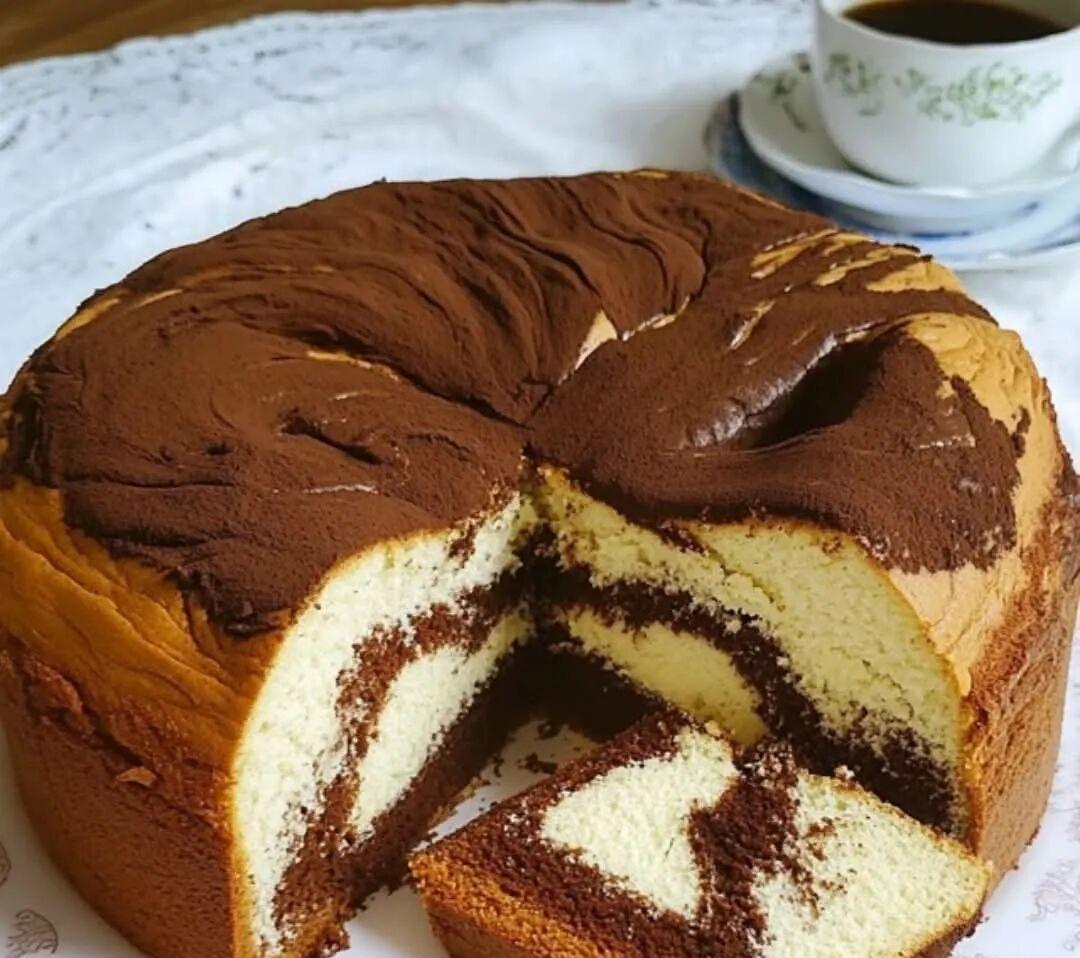 -Cut into small pieces and enjoy this delicious marbled sponge cake.