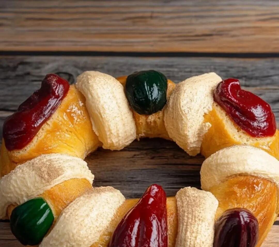 6. Coloring and decorating: Preheat oven and coat donuts with beaten eggs and garnish with preserves, sugar and almonds.