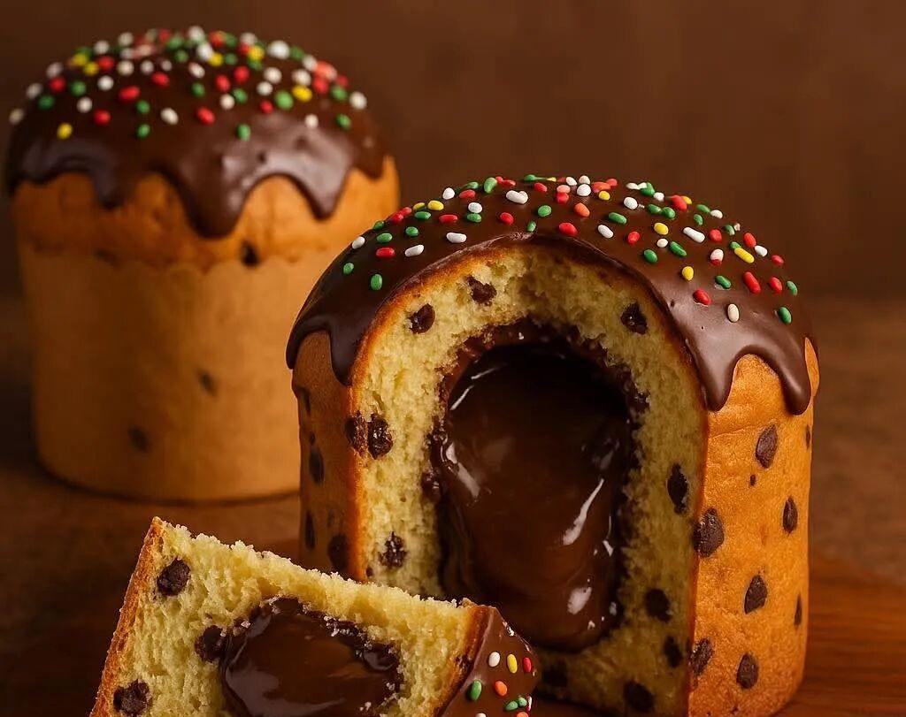 4 ️ ⃣ Add chocolate drops 🍫 , mix well and divide the dough into 2 panettone molds.