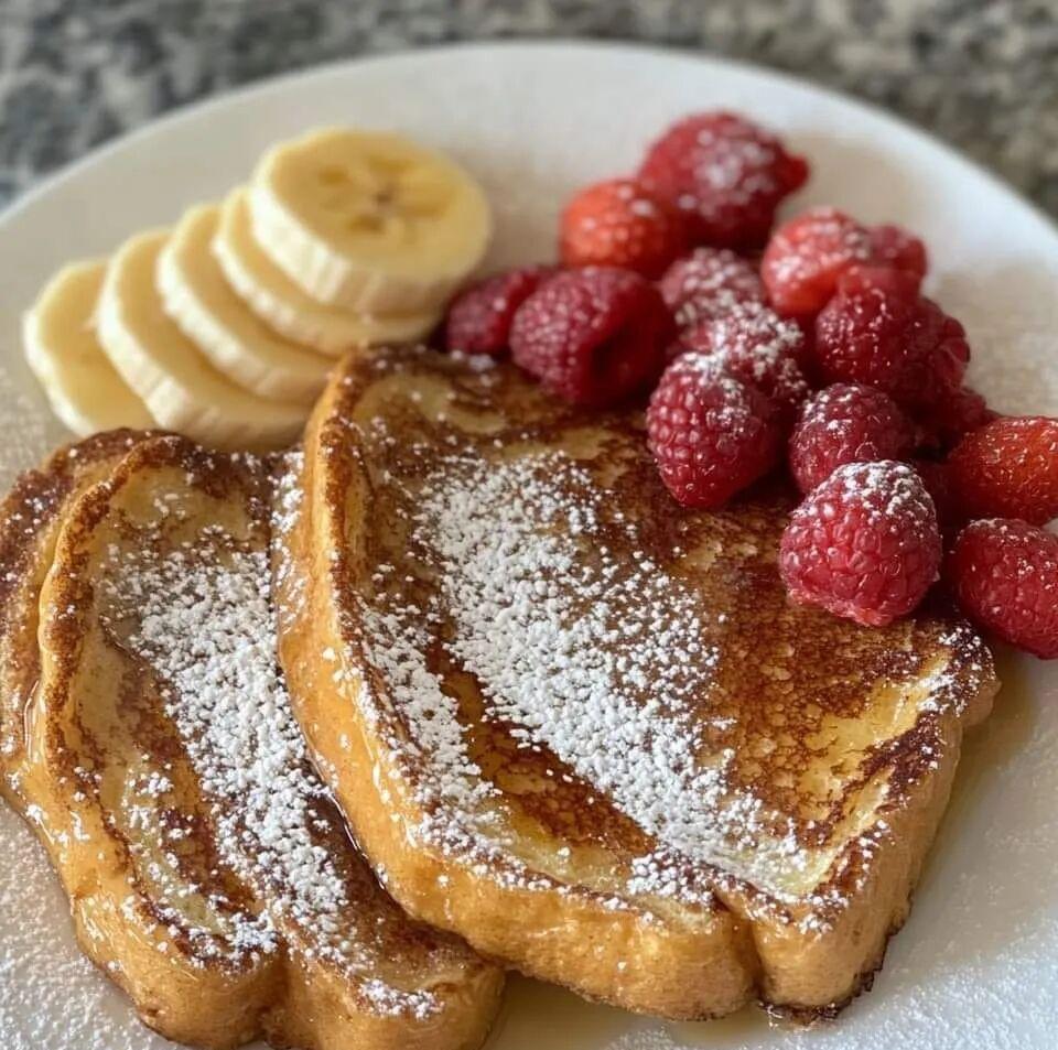 5. Serve: After baking, place the toast on a plate. Drizzle a little maple syrup on top and add your favorite fresh fruit for garnishing.