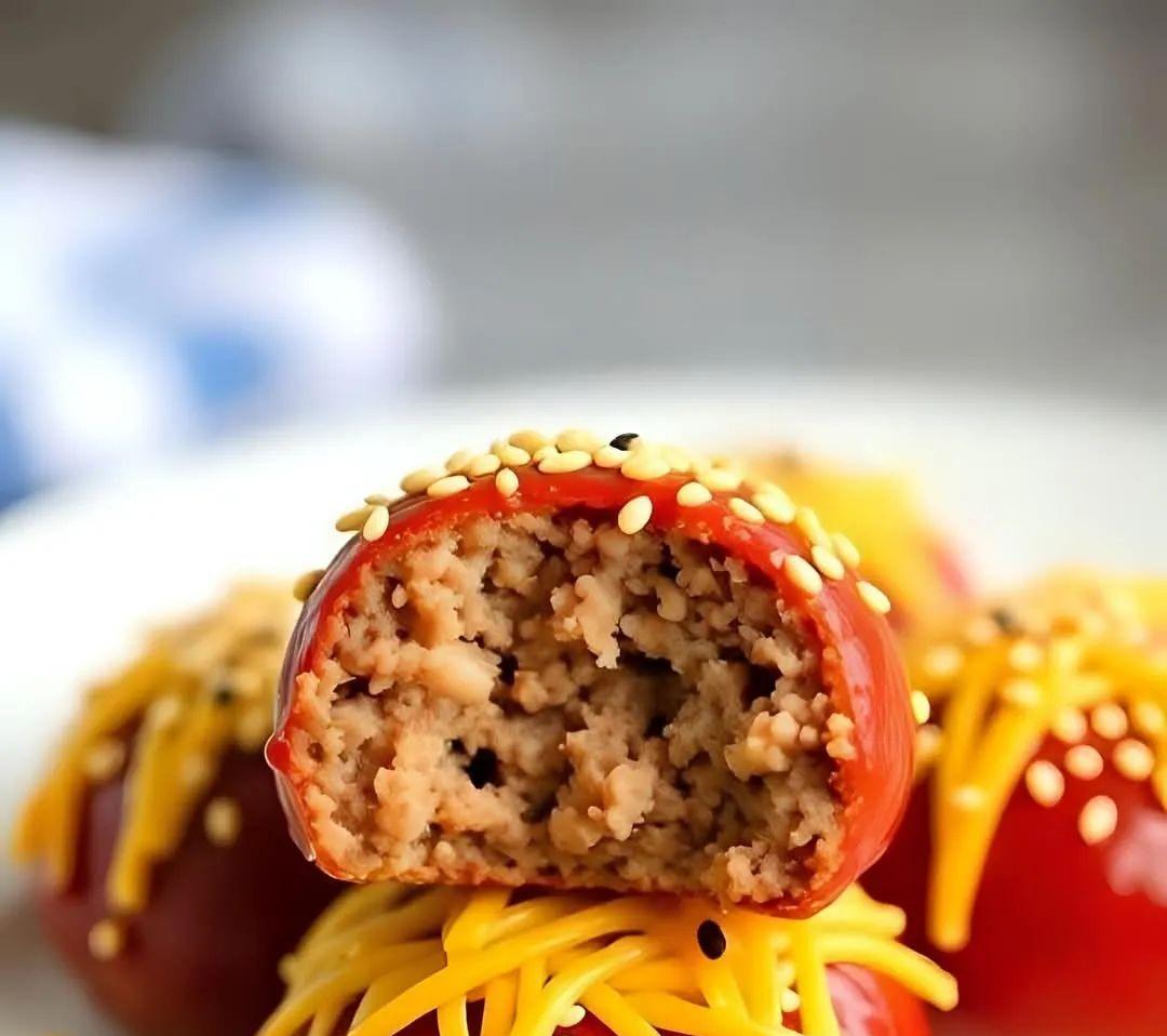 -Make a bomb: * * Divide the meat filling equally into 12 portions. Flatten each portion into a disc, place a piece of cheddar cheese in the middle, and wrap into a ball. Make sure the cheese is completely wrapped. 🧀
