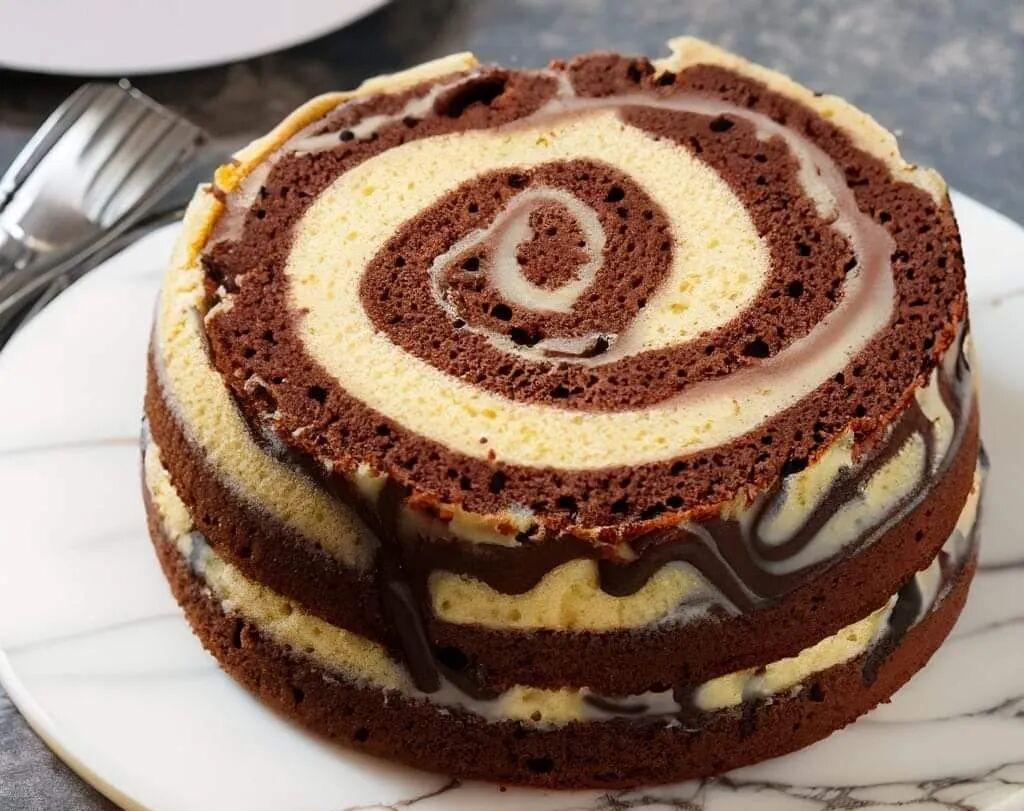 Chocolate Vanilla Sponge Cake with Marble Swirl