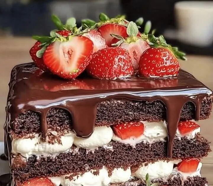 The filling is strawberry 🍓 and condensed milk 😍 Moist chocolate cake 🍫