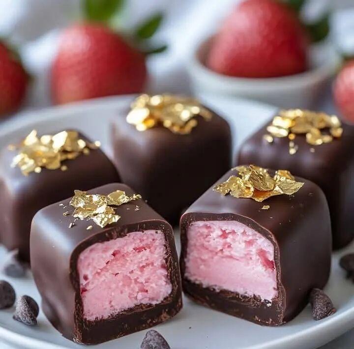 Please enjoy these delicious strawberry chocolates with creamy inside and chocolate outside! 🍓 🍫 😋