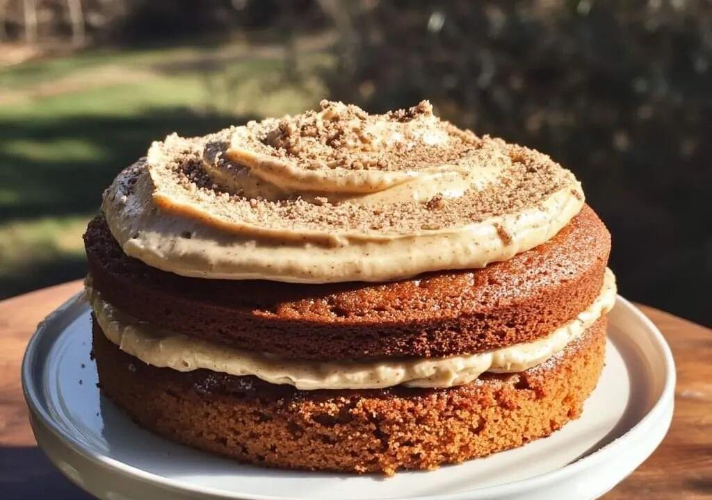 10. Once the cake has cooled completely, spread the cinnamon cream cheese frosting over the top and sides.