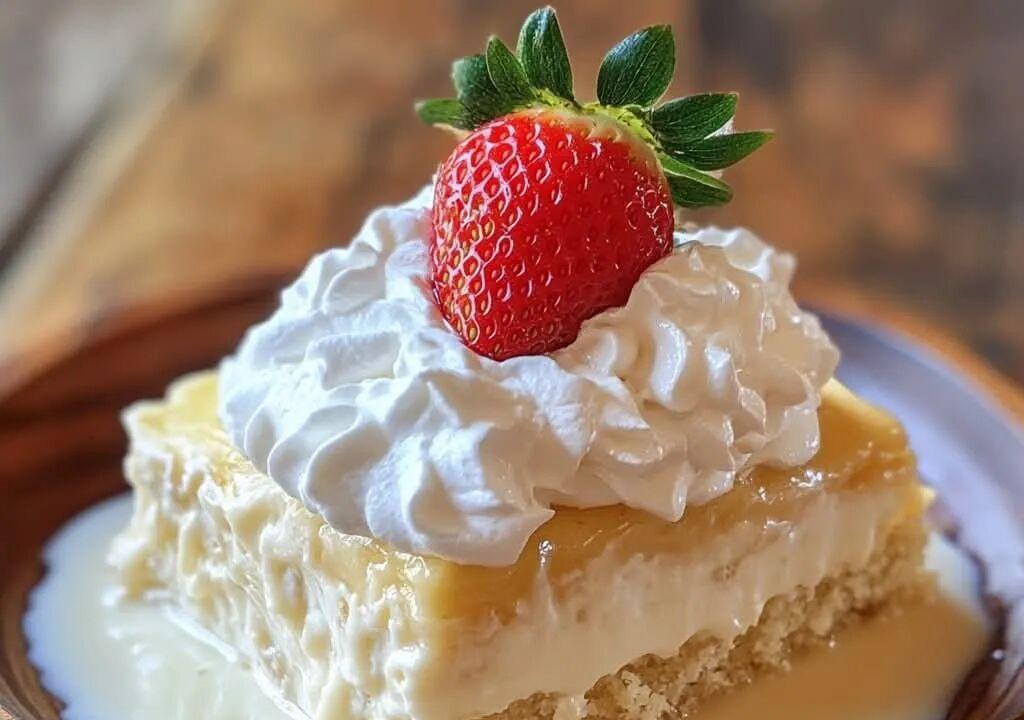 Slowly pour the tress sauce mixture over the cake and allow it to absorb completely.