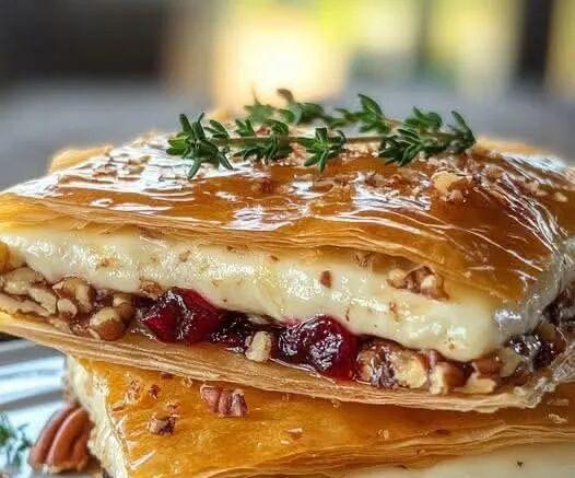 布里干酪、蔓越莓酱和核桃千层酥皮🤤😋 😋