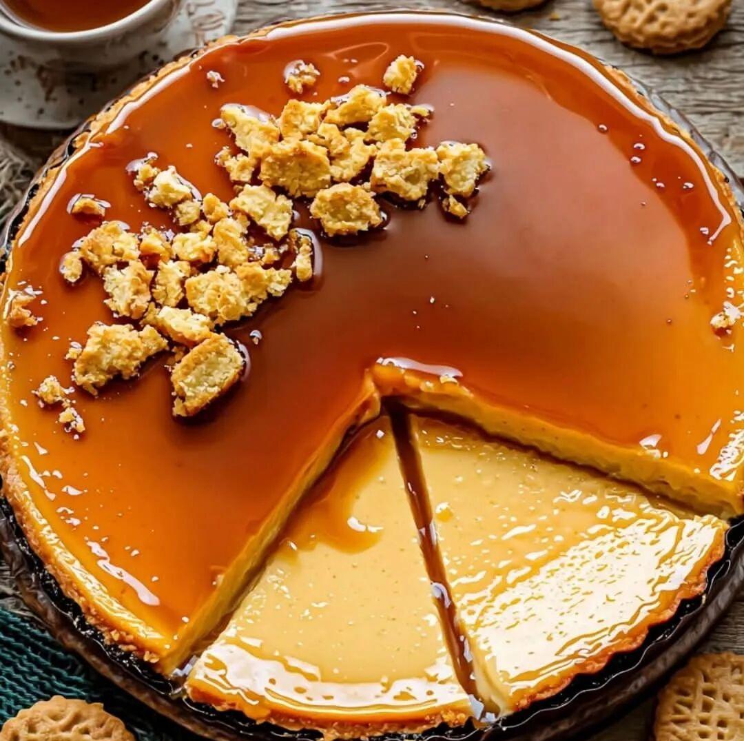 Pour the mixture into the mold: Pour the pie mixture over the hardened caramel in the mold.