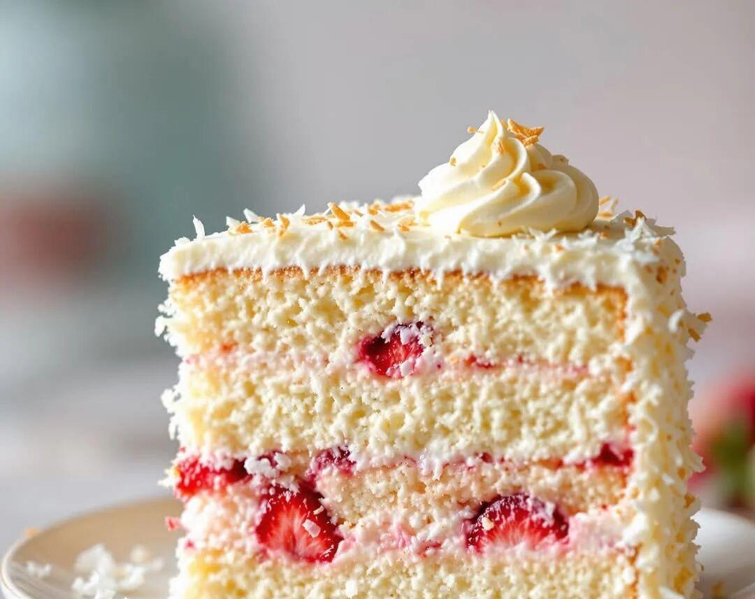 Paradise Coconut Cake with Strawberry Filling 🤍 ❤ 🎂