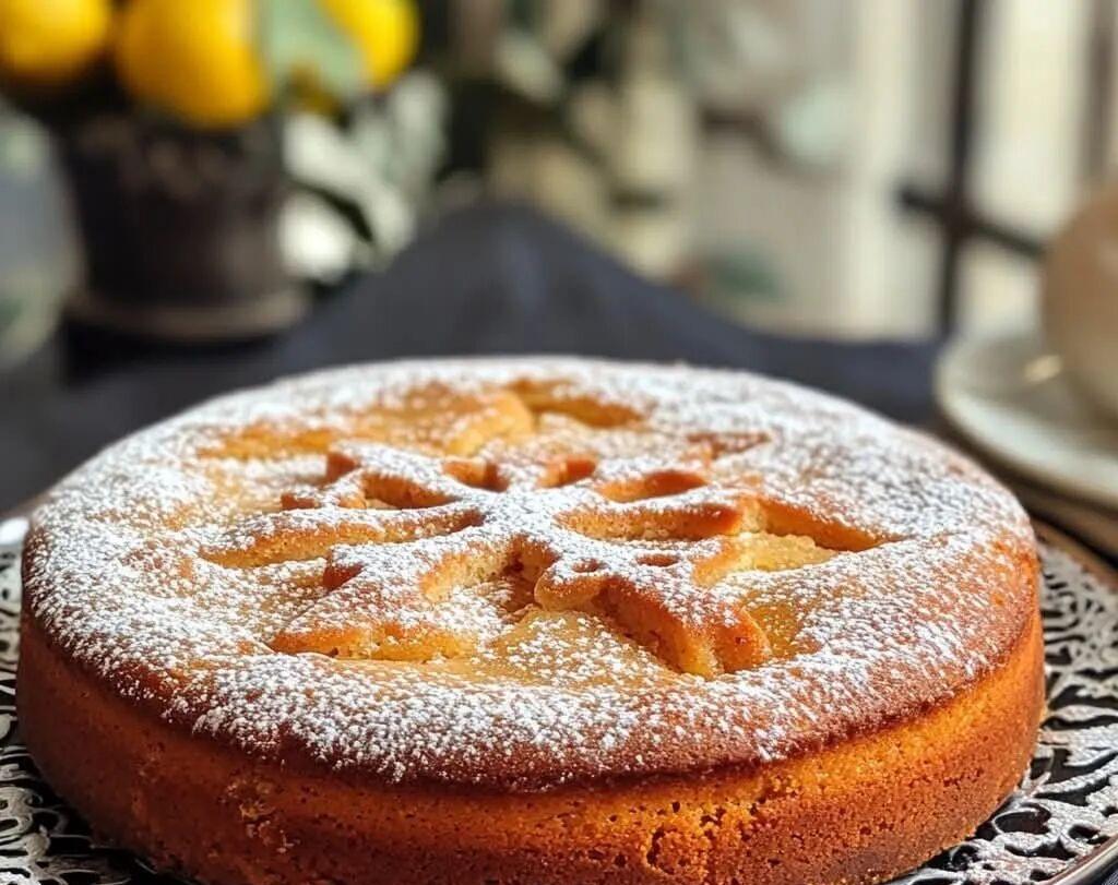 8. Decoration: When the cake has cooled, place the St. James Cross stencil in the center and sprinkle generously with powdered sugar. Carefully remove the template to reveal the cross.