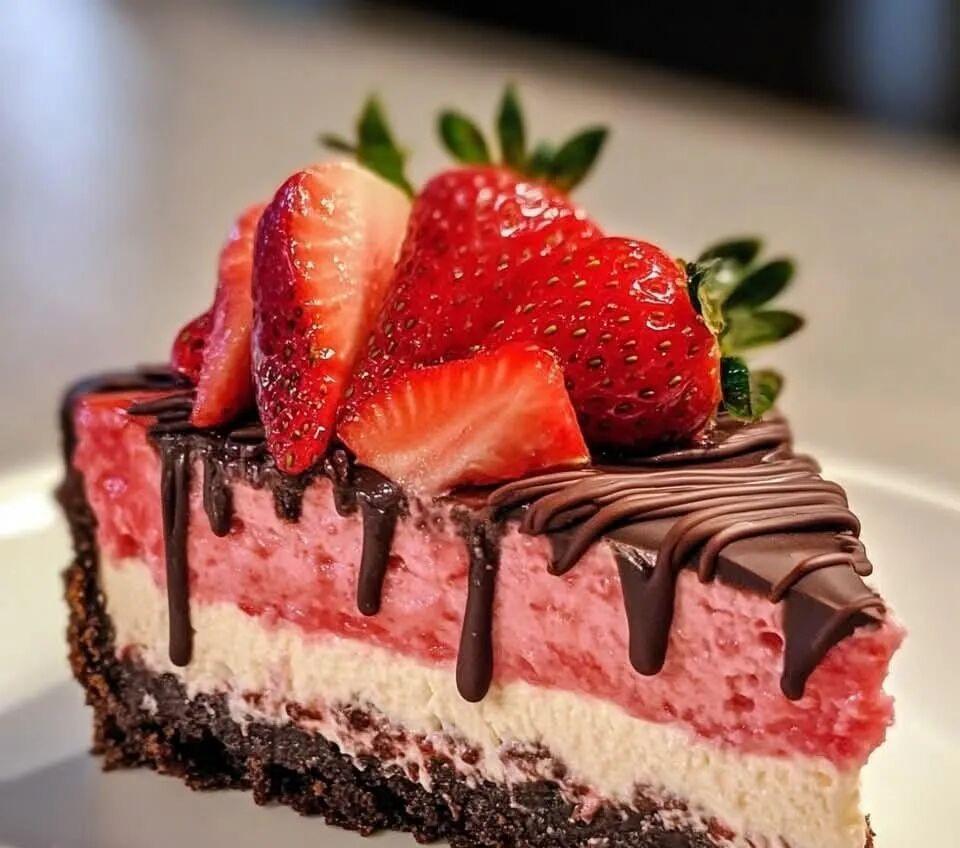 Enjoy a strawberry chocolate cheesecake for mouth-watering deliciousness. ๐ฐ ๐